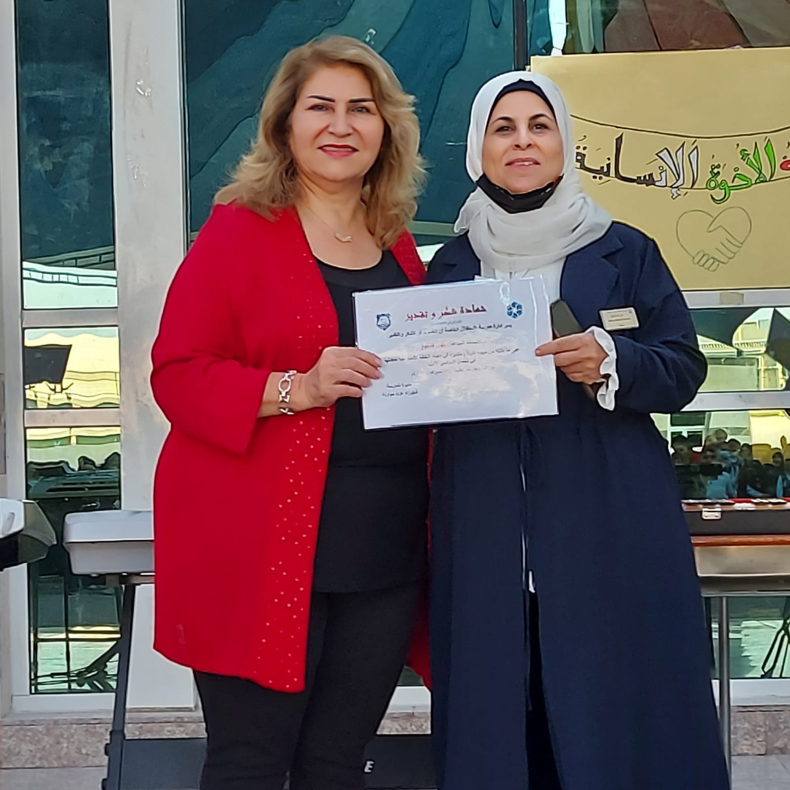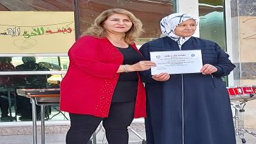 تكريم معلمات قسم الحلقة الأولى من قبل مديرة المدرسة الأستاذة شهرزاد حوارنة ضمن مبادرة 'شكرًا' لابداعهن في عمل الخطة الأسبوعيه طوال الفصل الداراسي الأول