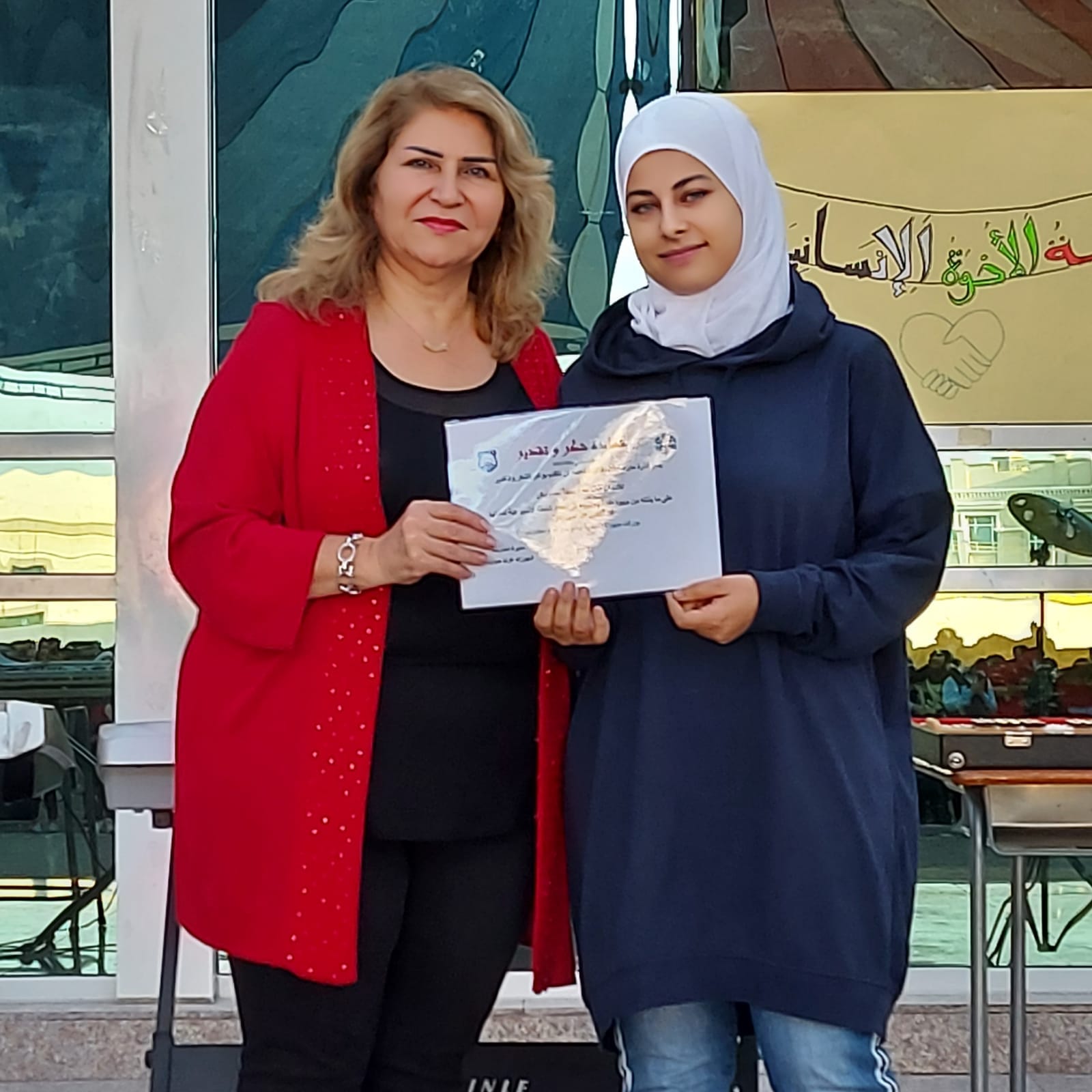 تكريم معلمات قسم الحلقة الأولى من قبل مديرة المدرسة الأستاذة شهرزاد حوارنة ضمن مبادرة 'شكرًا' لابداعهن في عمل الخطة الأسبوعيه طوال الفصل الداراسي الأول